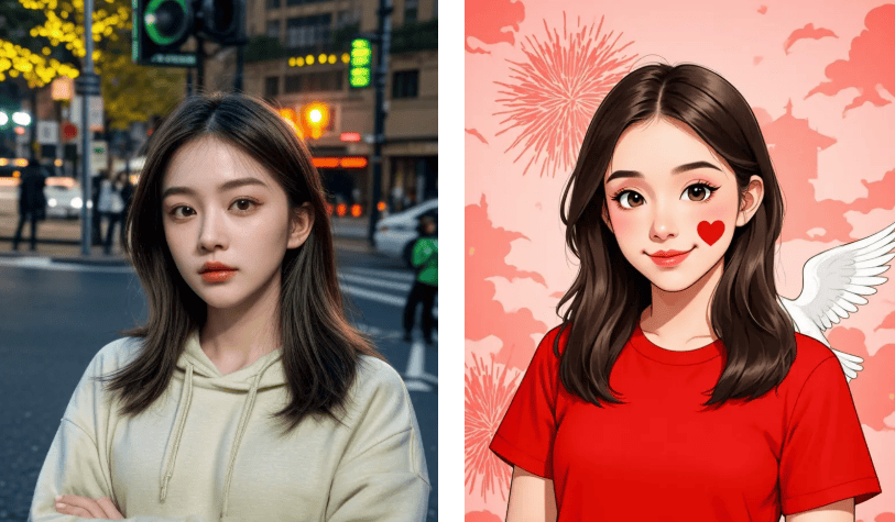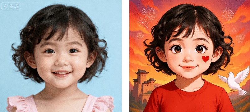 别急,上传照片就能生成融合国风元素的动漫头像,我试过多种国庆头像制做方式,会环抱肩头。