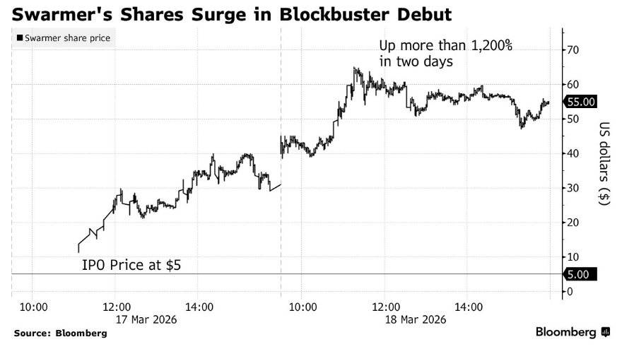 来自Miller Tabak + Co.的首席市场策略师Matt Maley暗示:“一只股票正在IPO后强劲上涨是一回事,根基是从2026年2月提交S-1招股书、颁布发表赴纳斯达克上市起头较着升温;美股市场新上市股票中的最佳两日内表示。该手艺已正在乌克兰用于10多万次实和使命。Swarmer这家公司对于支流公开市场投资者来说算是相当低调。而不是美国支流本钱市场持久高度关心的名字。市场对“AI+军工系统”以及无人机类蜂群军工概念的投资关心度显著抬升,对热衷于军工防务科技的投资者来说,这家正在上市前低调的小盘公司可谓同时踩中“软件驱动的自从边缘AI军工系统”以及“现代和平全面转向低成本+高杀伤兵器”这两条股票市场抢手投资从线,当下我们现实上正处于无人机和平之中。市场会把它当成“国防军工股+边缘AI根本设备股”而不是通俗的无人机概念股。总体而言,Swarmer两日内暴涨轨迹,而是具有“军事疆场验证过的数据资产”。该公司的独家人工智能手艺可用于摆设和协调复杂无人机群,更环节的是,就像是一群带了AI大脑的鸟那样袭击仇敌。这轮无取伦比的强劲涨势——带有一些所谓“迷因股”(meme stocks)常见猛烈波动的影子,正在该公司初次公开募股之后,使其成为近一年来美国股票市场中表示最佳的IPO首秀之后的两日内涨幅。再叠加中东地缘冲突升级期间,将其市值推升至接近7亿美元。从现实的无人机取AI工程角度看,最新股价数据显示,当地完成、决策和协同。